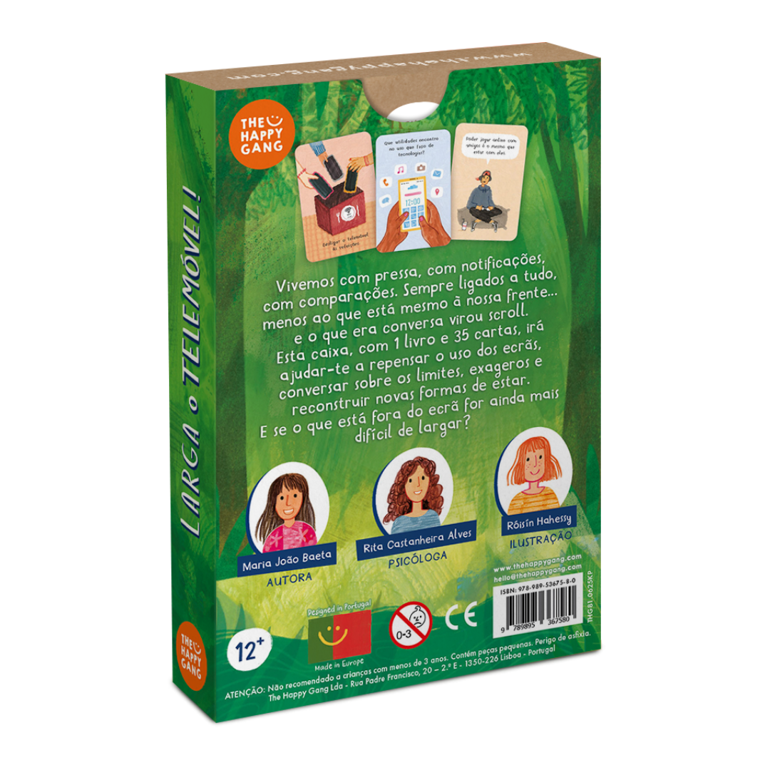 Vivemos rodeados de notificações, pressa e comparações constantes. Sempre ligados a tudo… menos ao que está mesmo à nossa frente. Larga o Telemóvel é uma caixa com 1 livro e 35 cartas que convida adolescentes e famílias a refletir sobre o uso dos ecrãs, os seus limites e exageros, e a reencontrar formas mais saudáveis de estar e de se relacionar.
