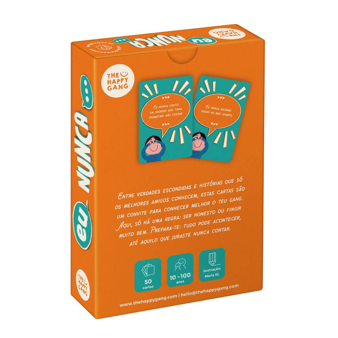 Segredos revelados e muitas gargalhadas! Eu Nunca é um jogo de cartas cheio de perguntas inesperadas, perfeito para descobrir histórias escondidas e testar o quanto conheces os teus amigos. Só há uma regra: ser honesto… ou fingir muito bem.