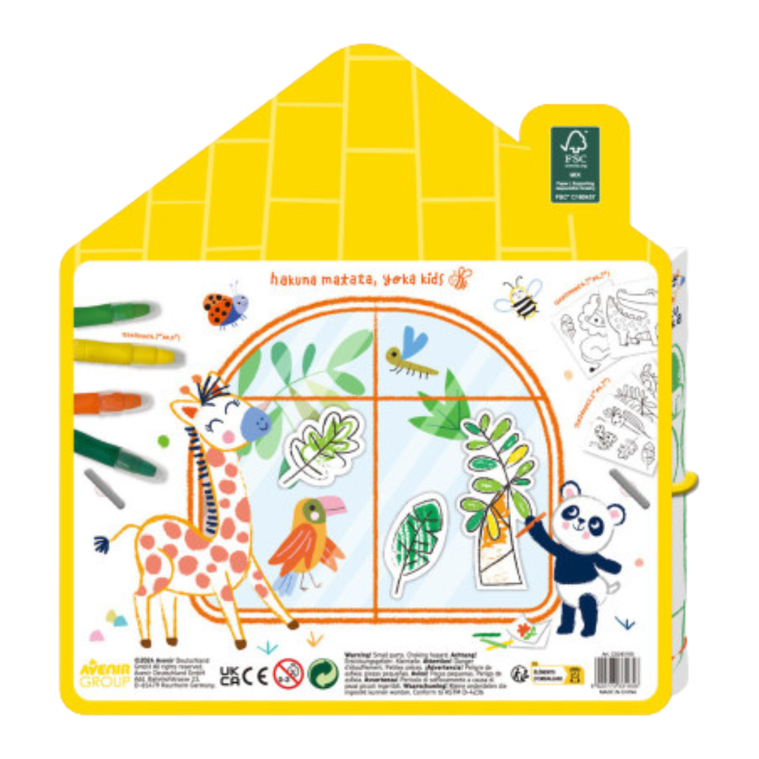 Com lápis macios e coloridos, feitos com cera de abelha natural, as crianças podem desenhar livremente em superfícies lisas. Cada conjunto traz ainda 10 autocolantes estáticos reutilizáveis, que podem ser colados e descolados vezes sem conta. A limpeza é simples: basta um pano macio para apagar e recomeçar.