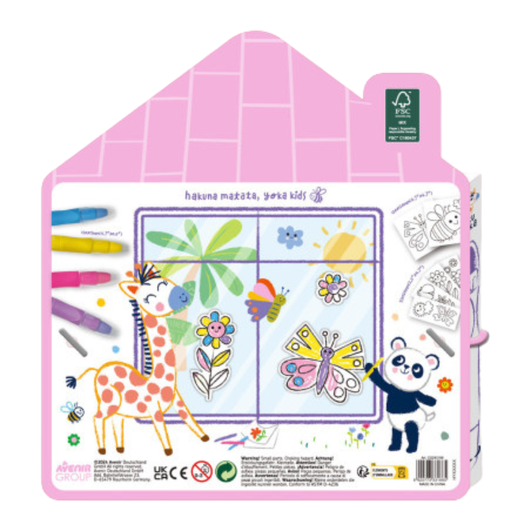 Com lápis macios e coloridos, feitos com cera de abelha natural, as crianças podem desenhar livremente em superfícies lisas. Cada conjunto traz ainda 10 autocolantes estáticos reutilizáveis, que podem ser colados e descolados vezes sem conta. A limpeza é simples: basta um pano macio para apagar e recomeçar.